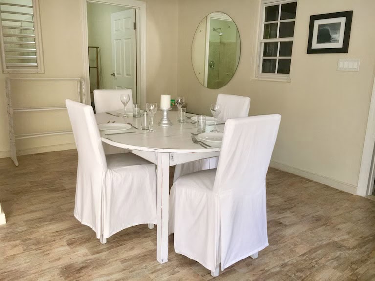 'CHEEZ DON BREAD' is a Spacious beach front 4 star villa style accommodation located on beautiful Long Beach just 7 minutes drive from Grantley Adams International Airport, 1Queen bed with twin sofa bed plus twin bed in bedroom 2 (sleeps 4A comfortable),Fully equipped Kitchen with granite counter tops, small Washer/Dryer,WIFI,Cable TV,A/C,Coffee maker,Full bath w/separate powder plus outdoor shower. Check in 3pm,Check-Out 11am.